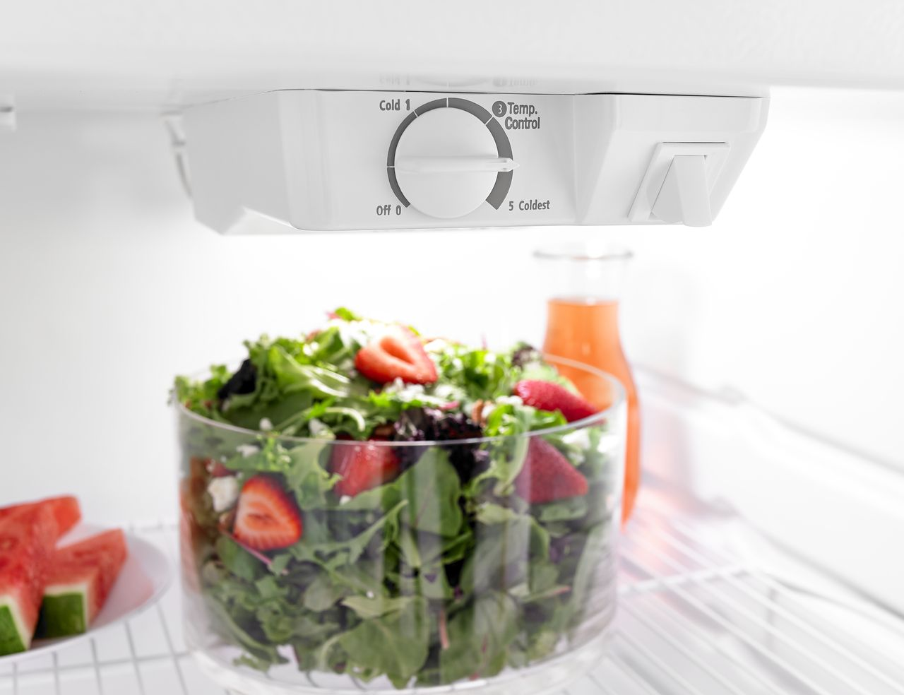 Up-Front Temperature Control System keeps the controls front and center, so you can change temps without having to reach over bottles, jars or the mystery that may be lurking at the back of the fridge.